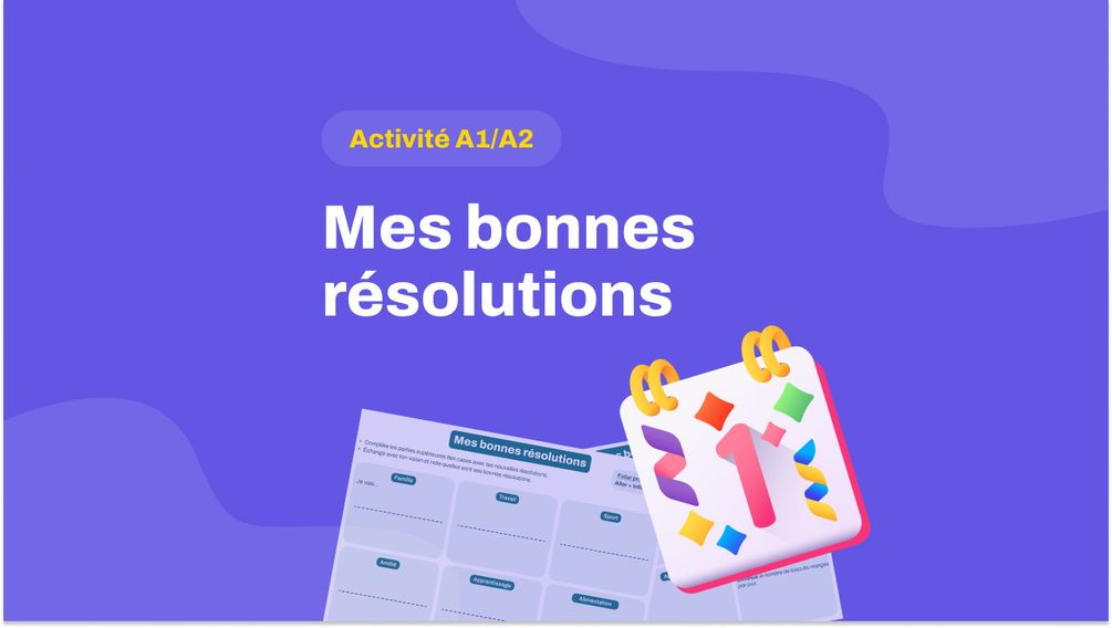 Certains apprenants sont rĂ©fractaires Ă  l’idĂ©e de « perdre » du temps Ă  cette rĂ©flexion et ne le feront jamais! Je te propose ainsi l’activitĂ© « Mes bonnes rĂ©solutions » A1/A2 afin de rĂ©flĂ©chir Ă  l’apprentissage d’une maniĂšre dĂ©tournĂ©e. 🙃